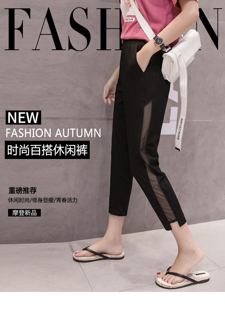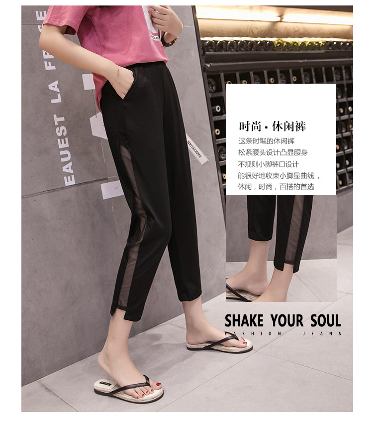 实拍薄款镂空网纱拼接女韩版透视百搭学生宽松哈伦裤9分裤