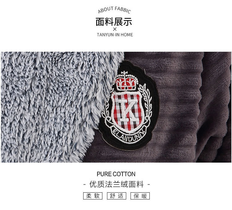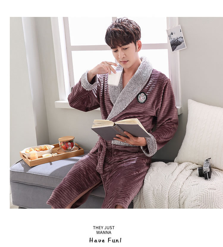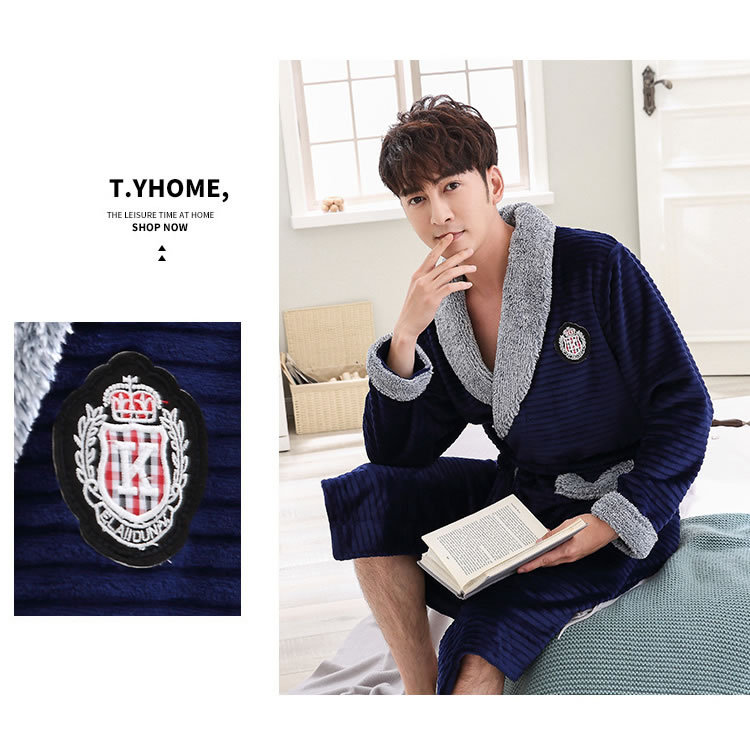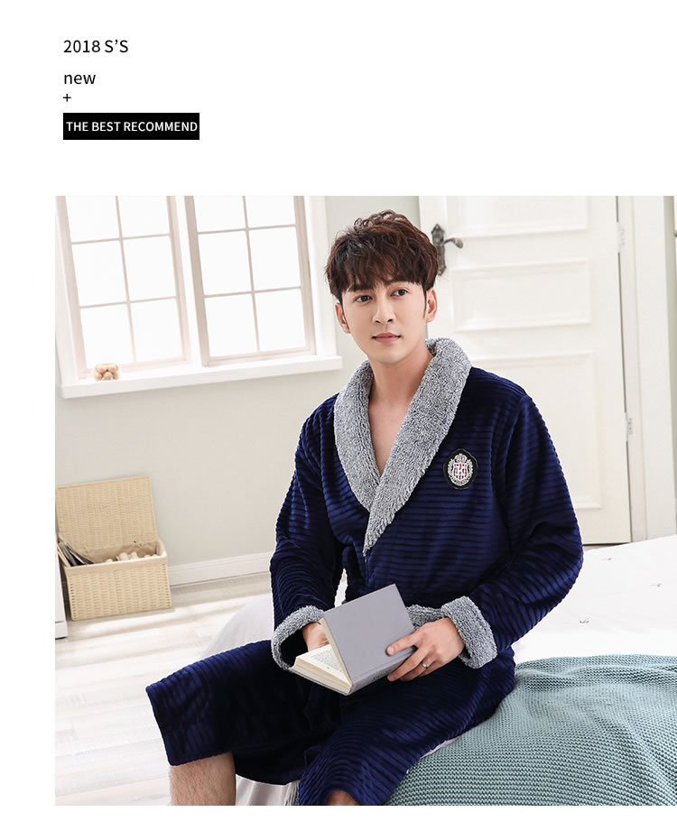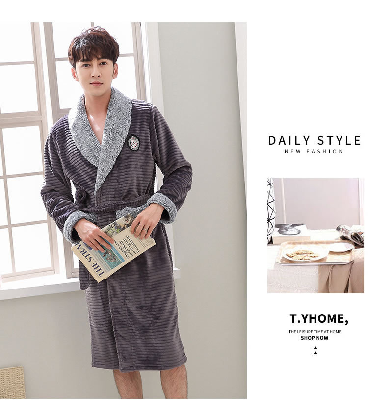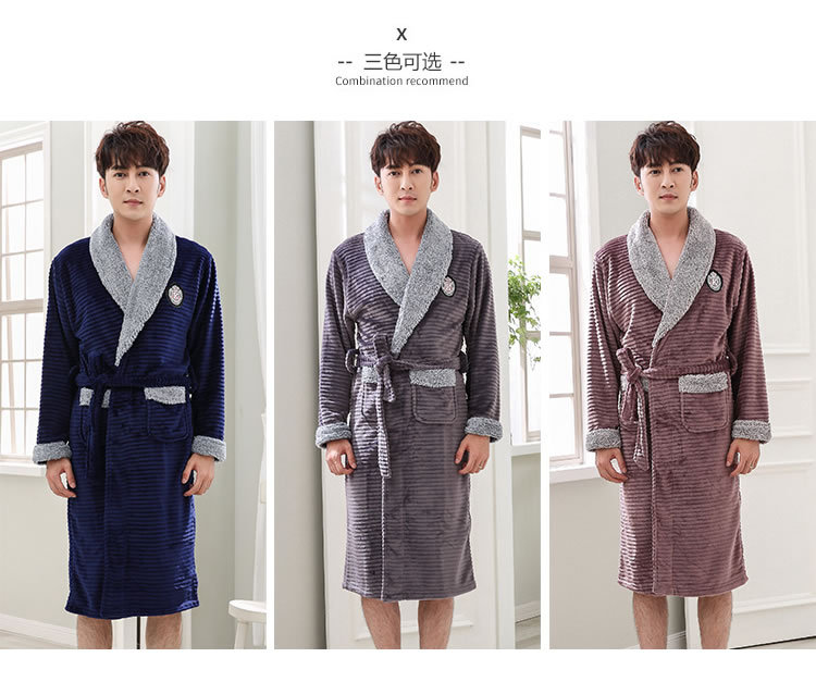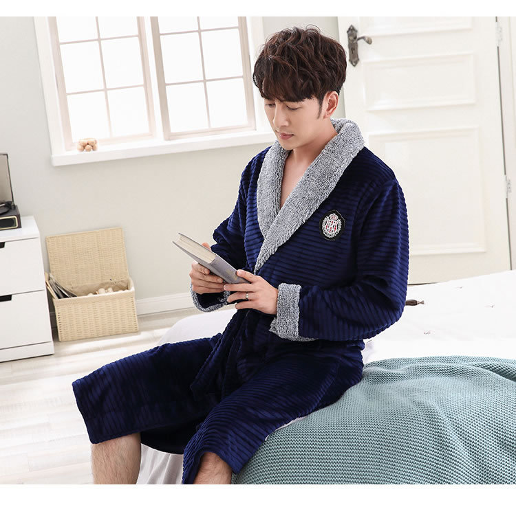 睡袍男冬季珊瑚绒加厚中长款法兰绒浴袍睡衣大码青年浴衣家居服