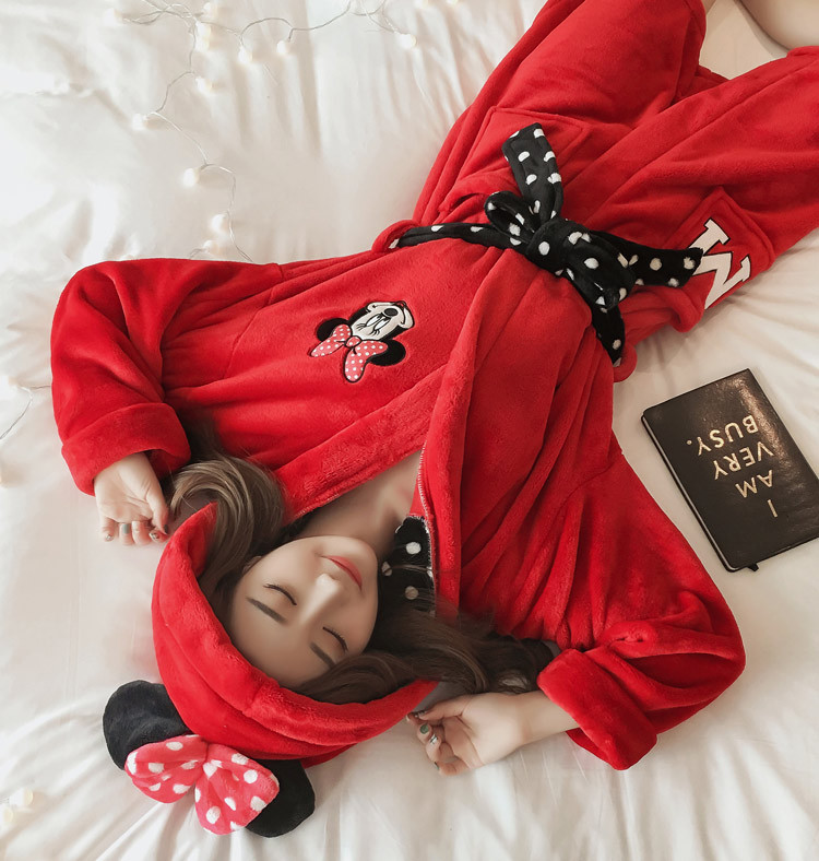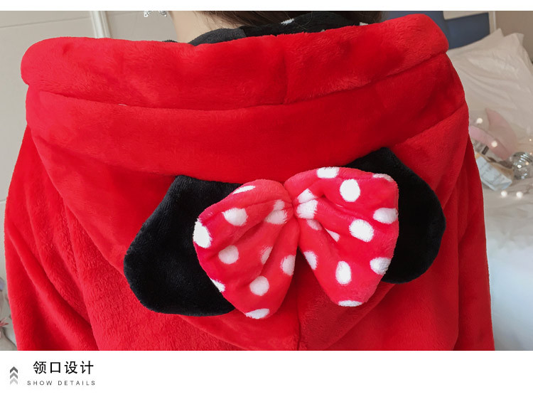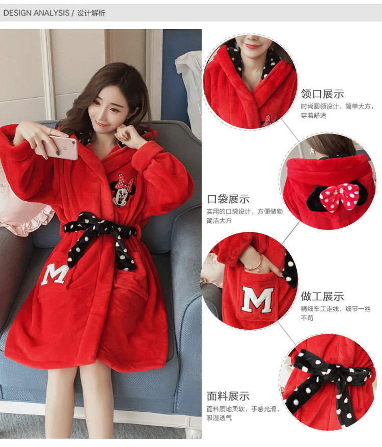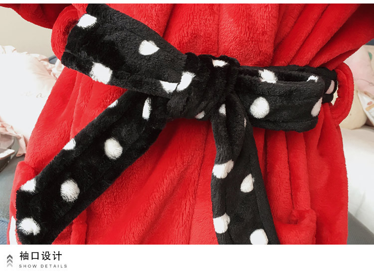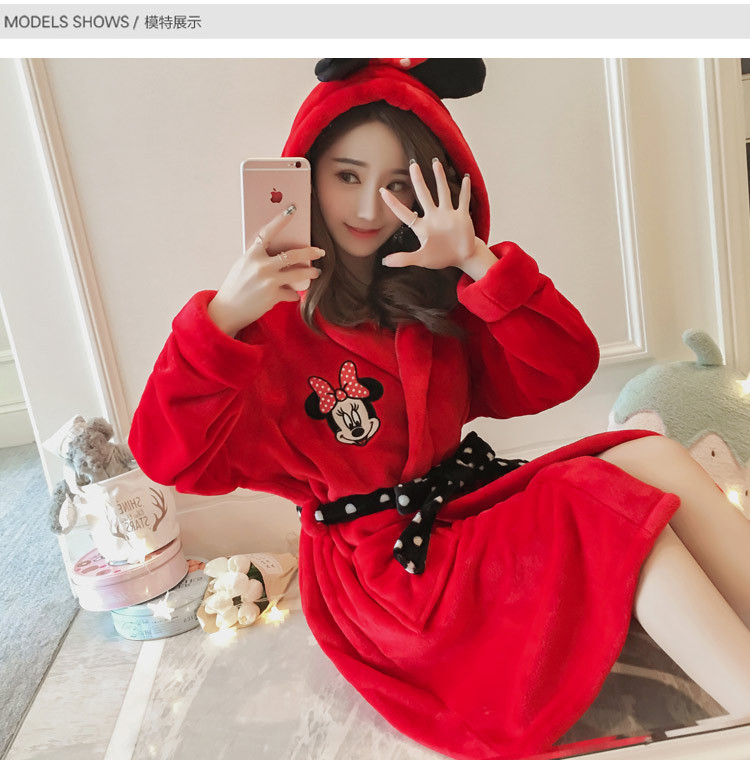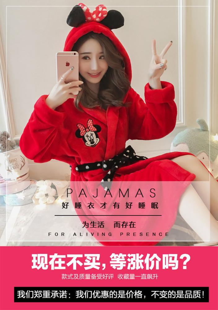 睡袍女冬加厚法兰绒可爱红色米奇性感浴袍珊瑚绒睡衣女秋冬睡裙女