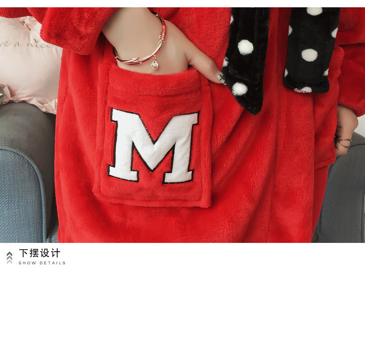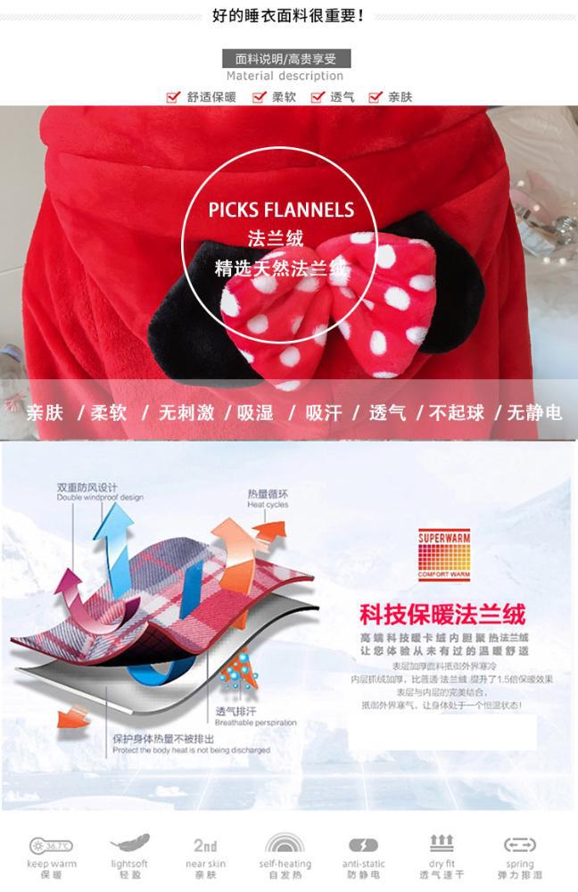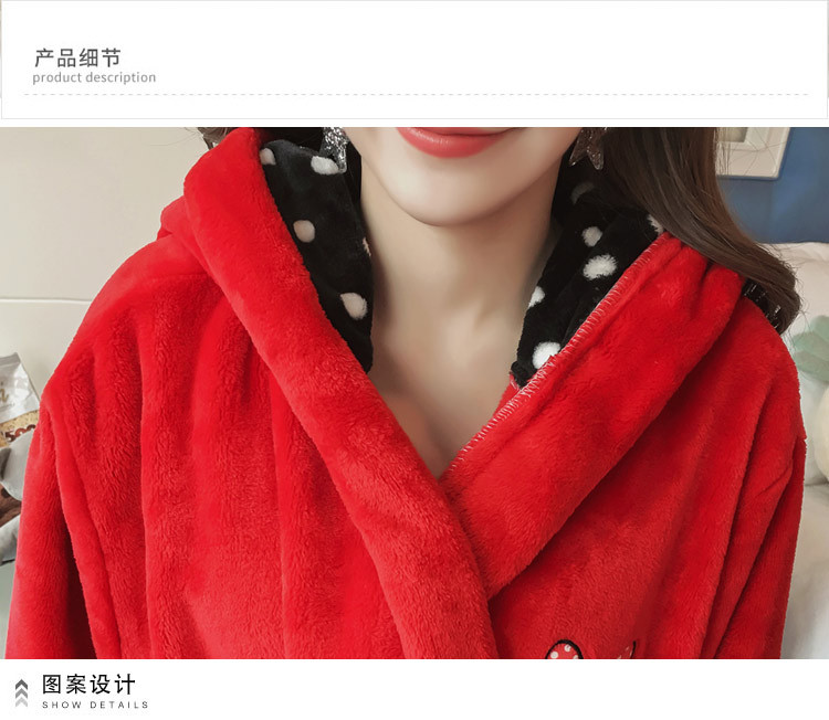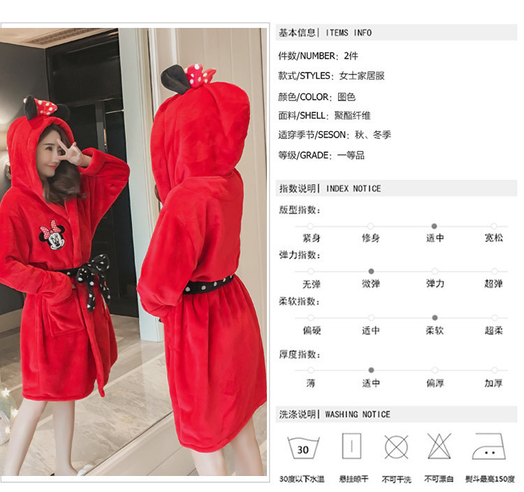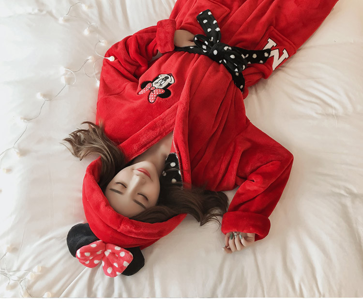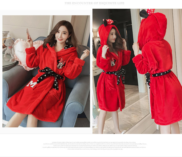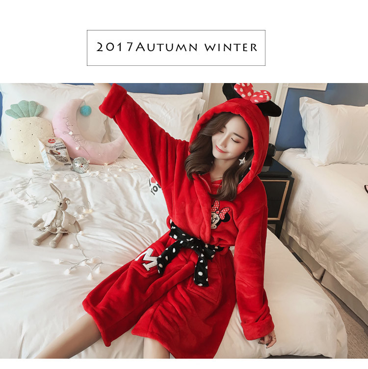 睡袍女冬加厚法兰绒可爱红色米奇性感浴袍珊瑚绒睡衣女秋冬睡裙女