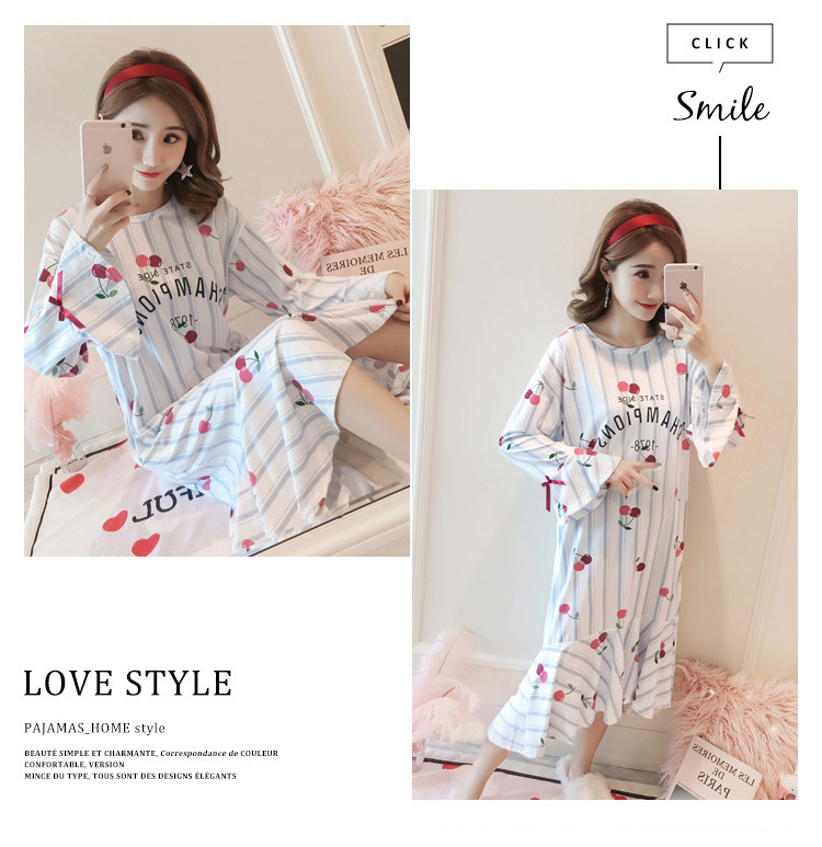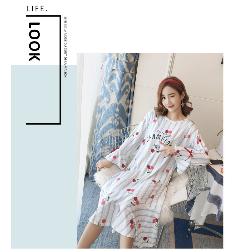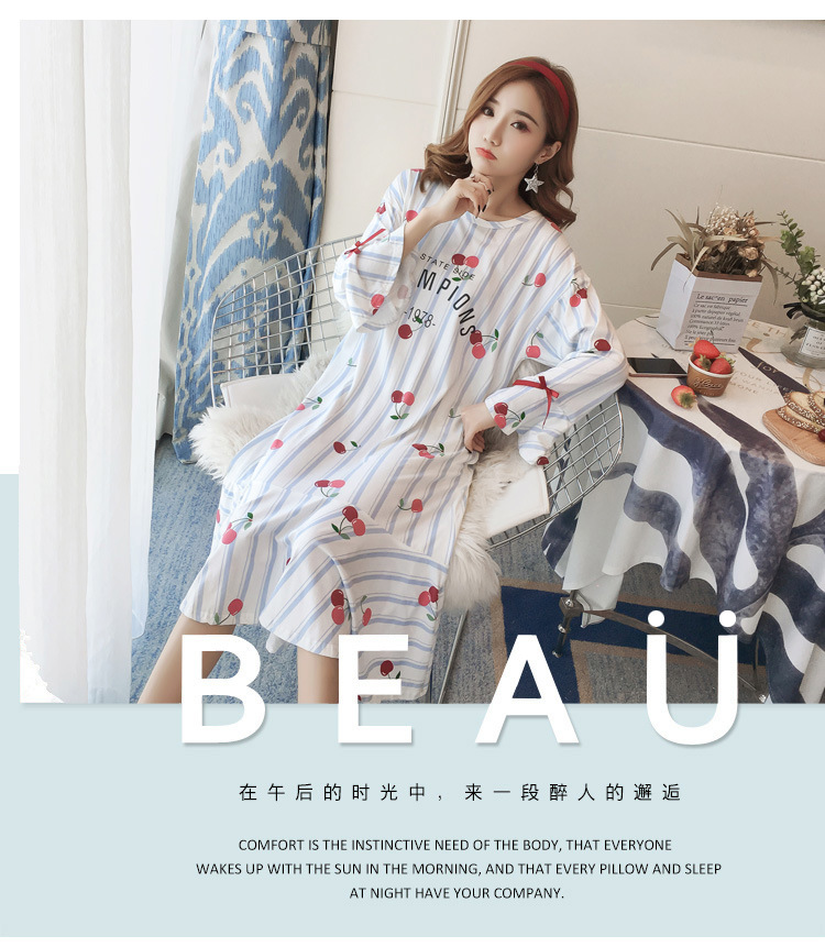 新款韩版春秋冬睡裙女牛奶丝睡衣长袖休闲甜美少女学生家居服长裙