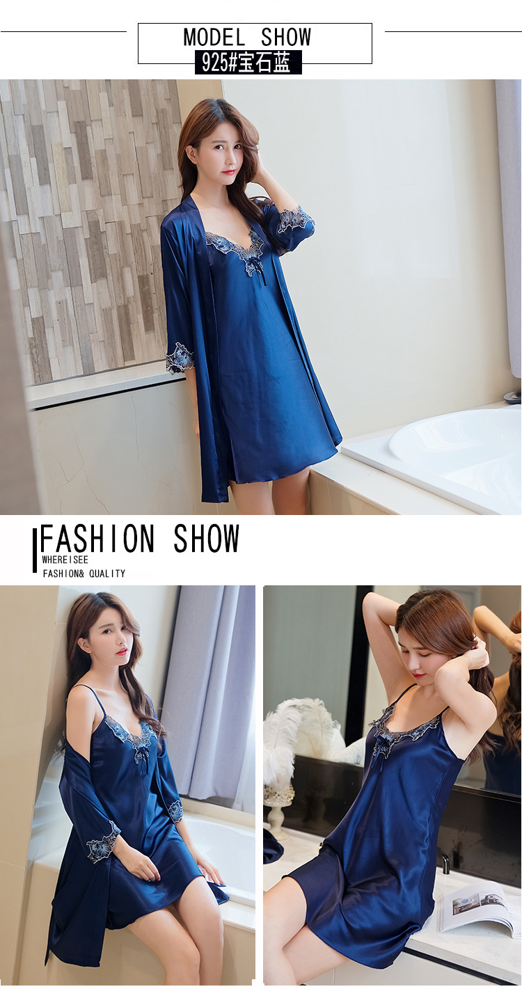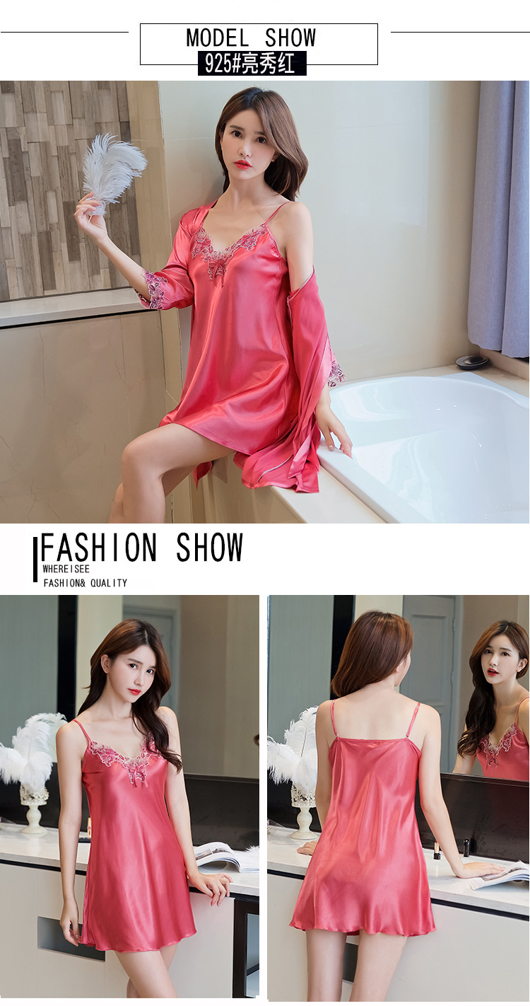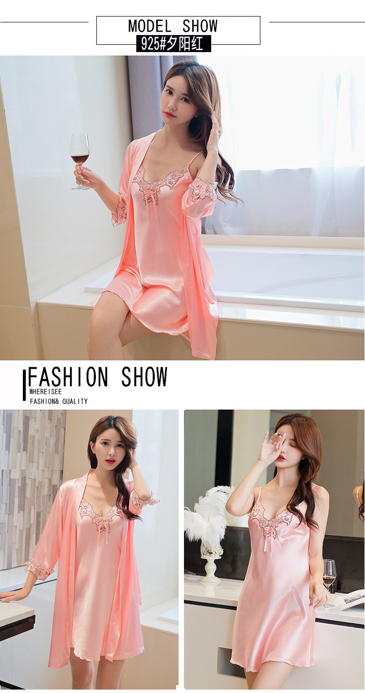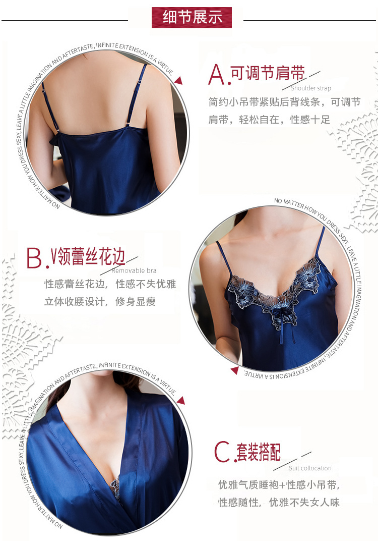 性感睡衣女吊带睡裙两件套夏薄冰丝绸睡裙家居服睡衣女春秋仿真丝