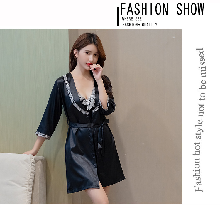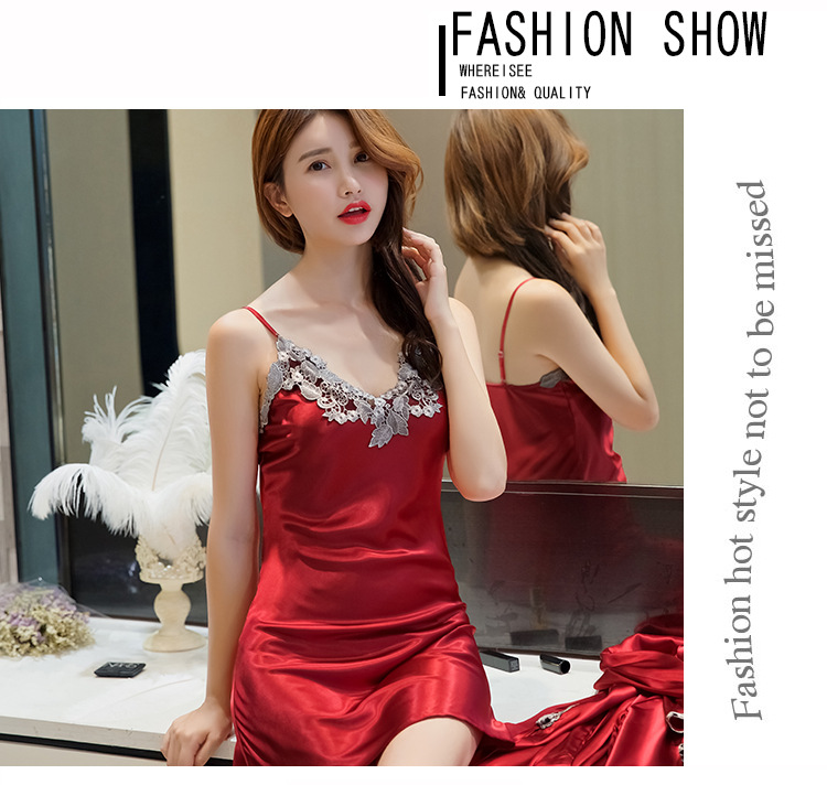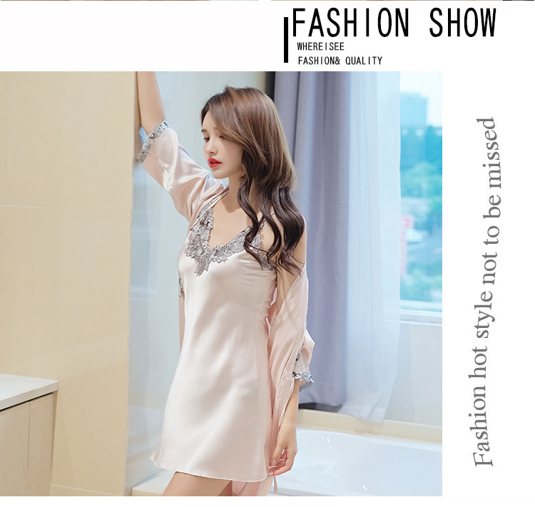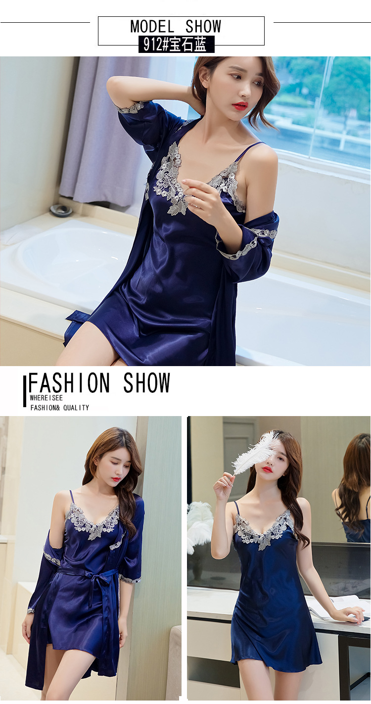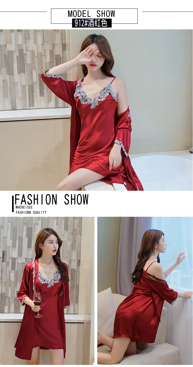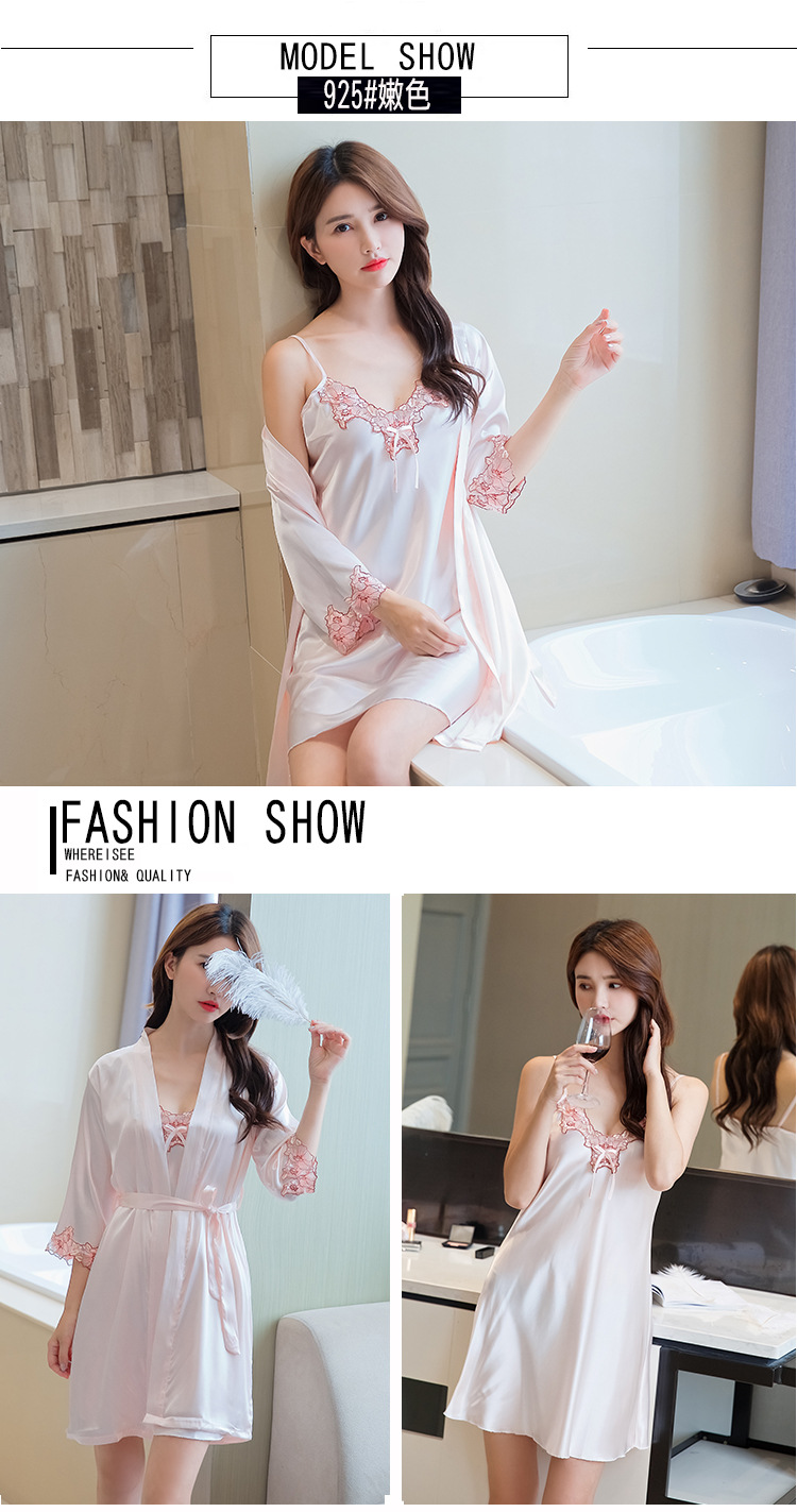 性感睡衣女吊带睡裙两件套夏薄冰丝绸睡裙家居服睡衣女春秋仿真丝