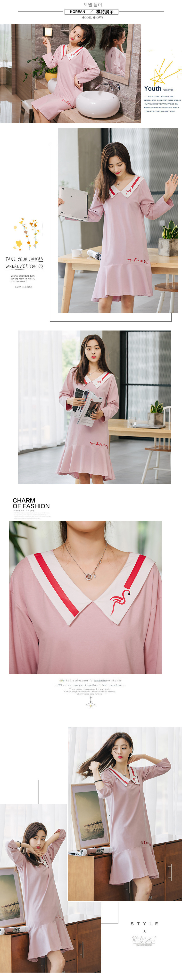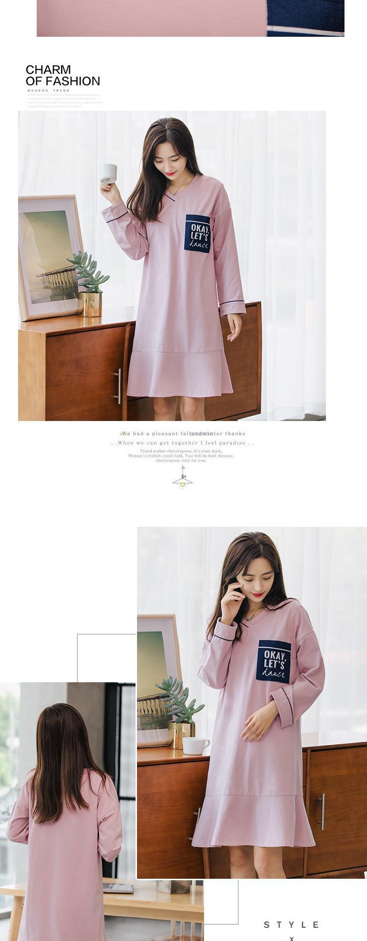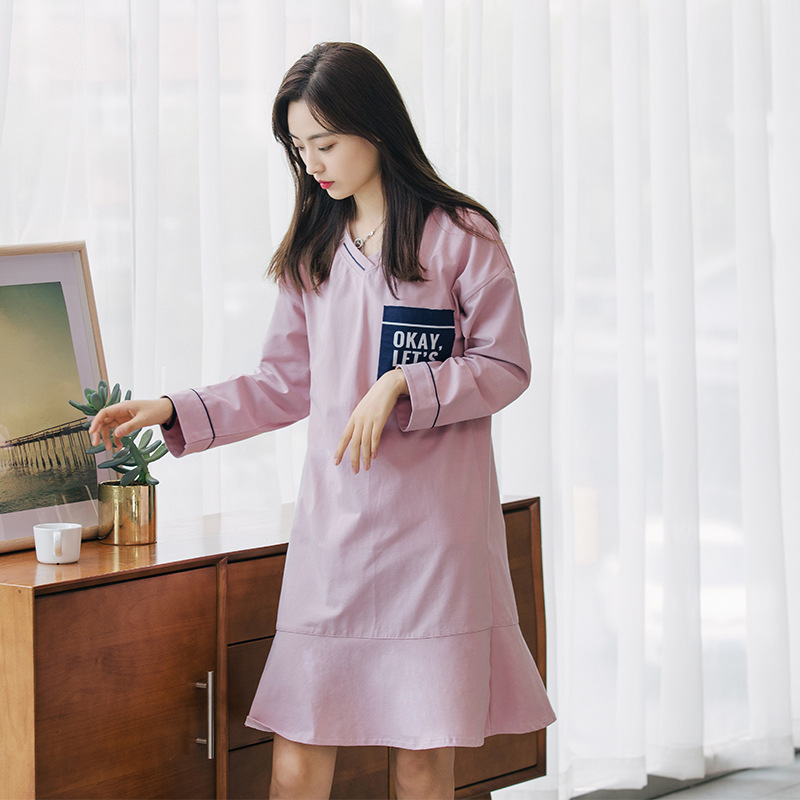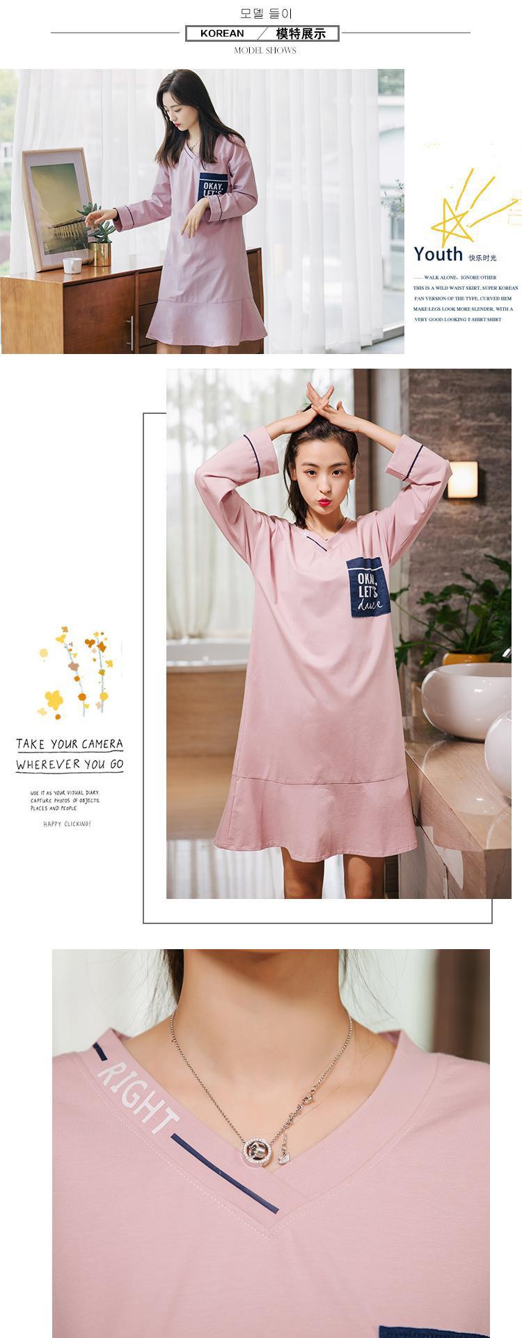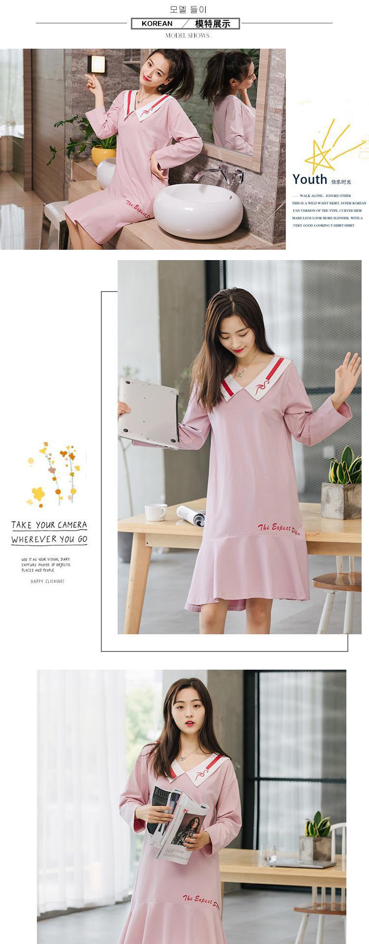 秋冬季性感纯棉睡裙女长袖中长款宽松大码甜美可爱全棉睡衣家居服