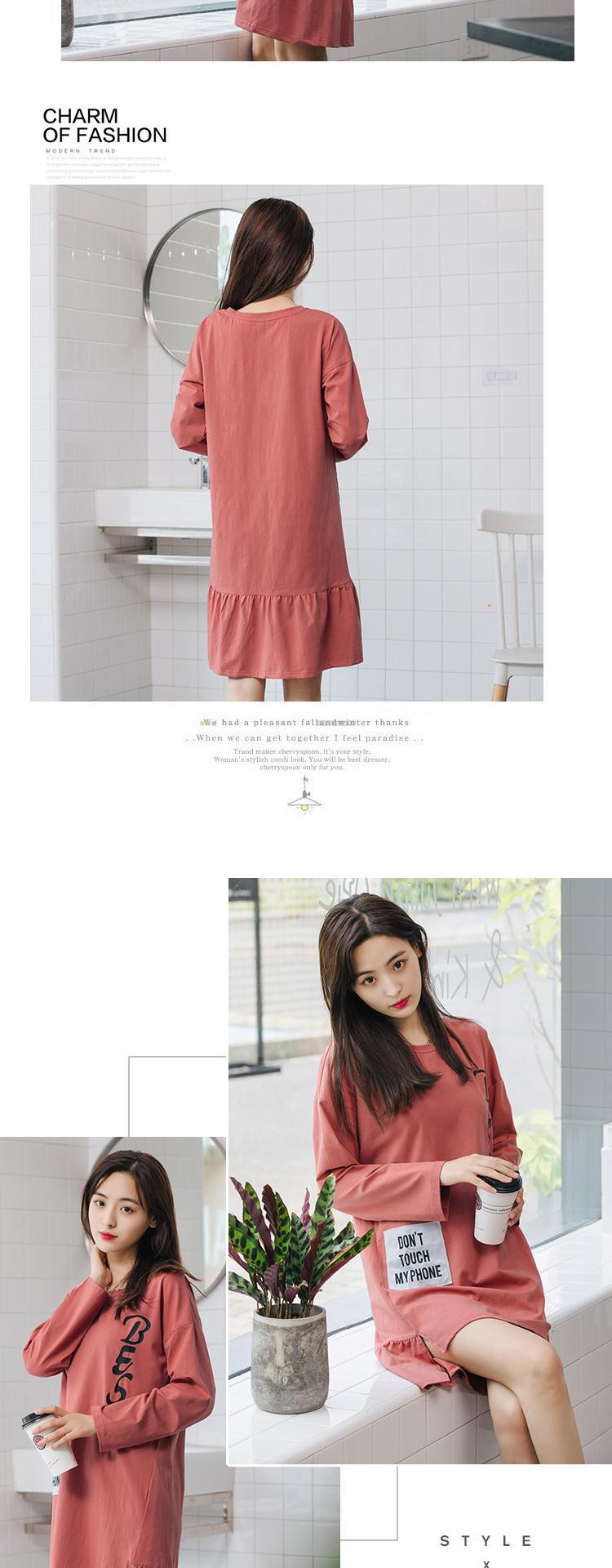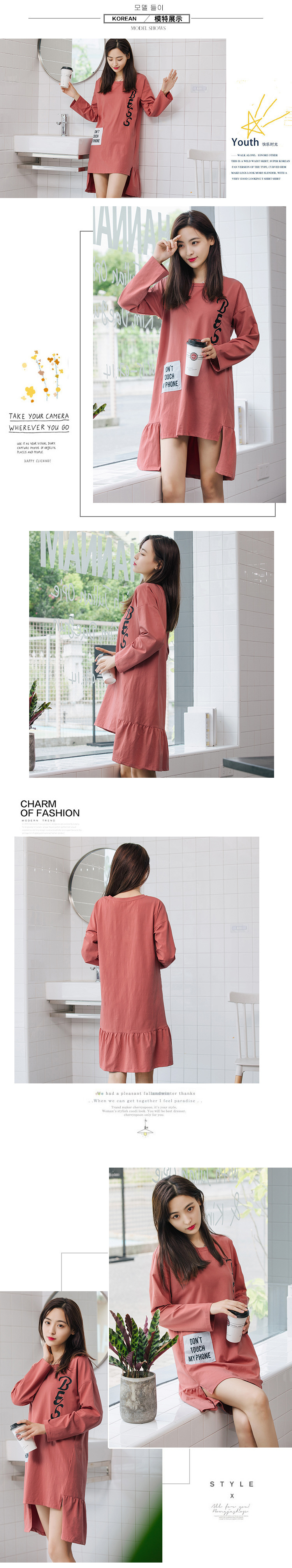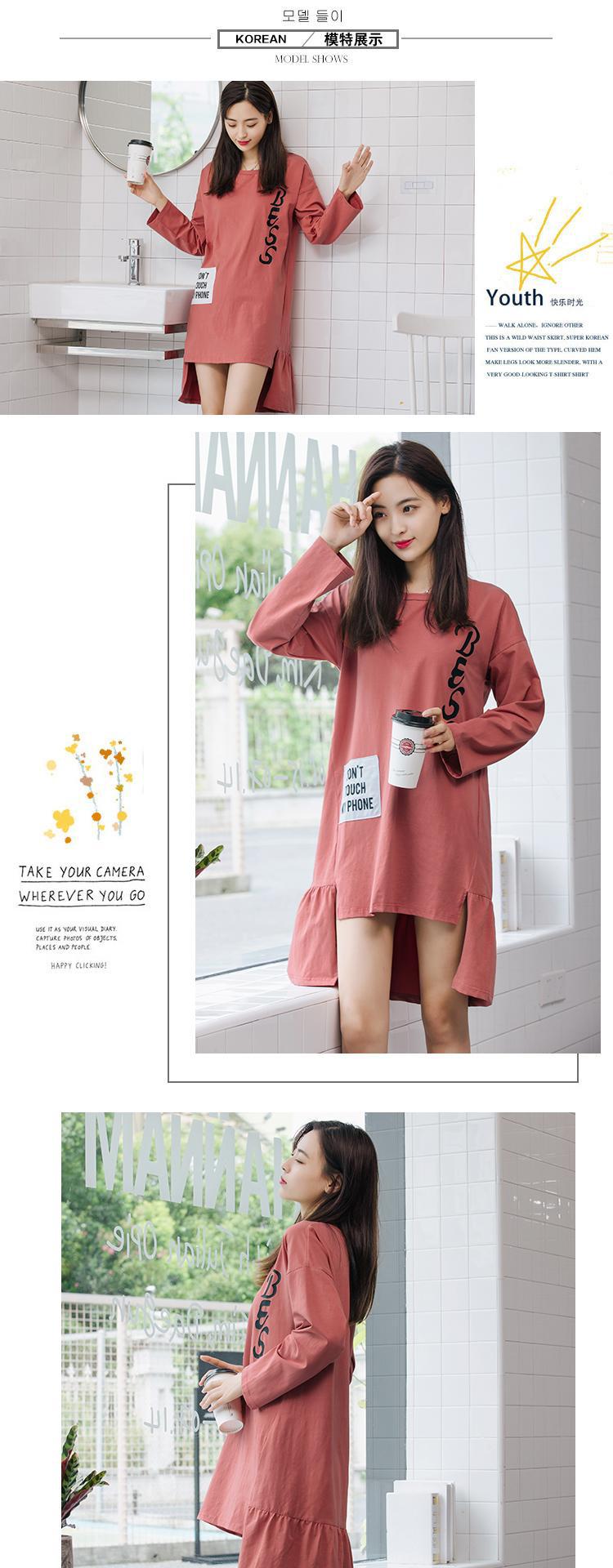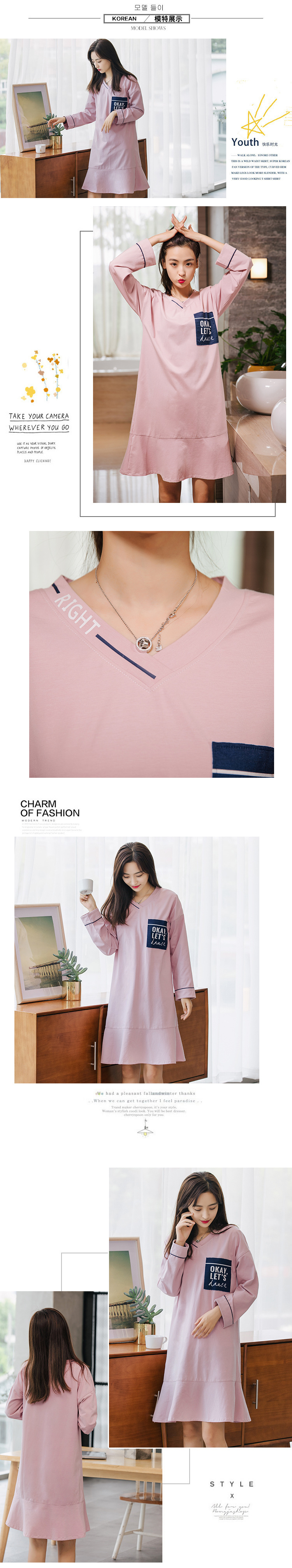秋冬季性感纯棉睡裙女长袖中长款宽松大码甜美可爱全棉睡衣家居服