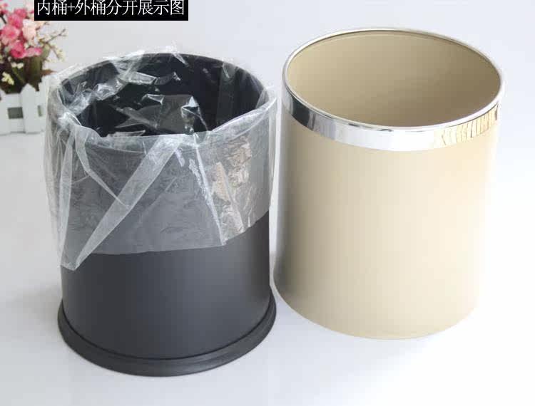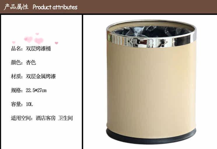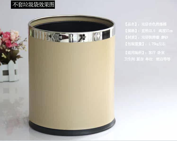 厂家直销 杏色烤漆酒店家用客房双层高尚垃圾桶纸篓筒果皮箱