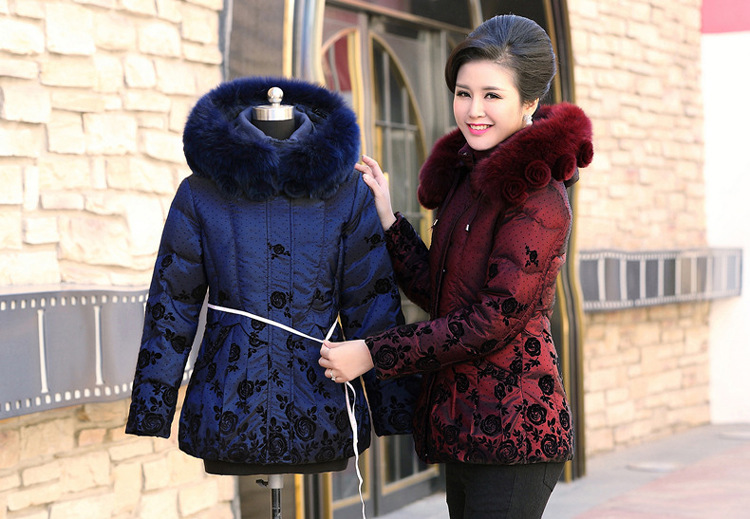 2017冬装新款加厚中老年羽绒服女外套妈妈装奶奶装白鸭绒大毛领