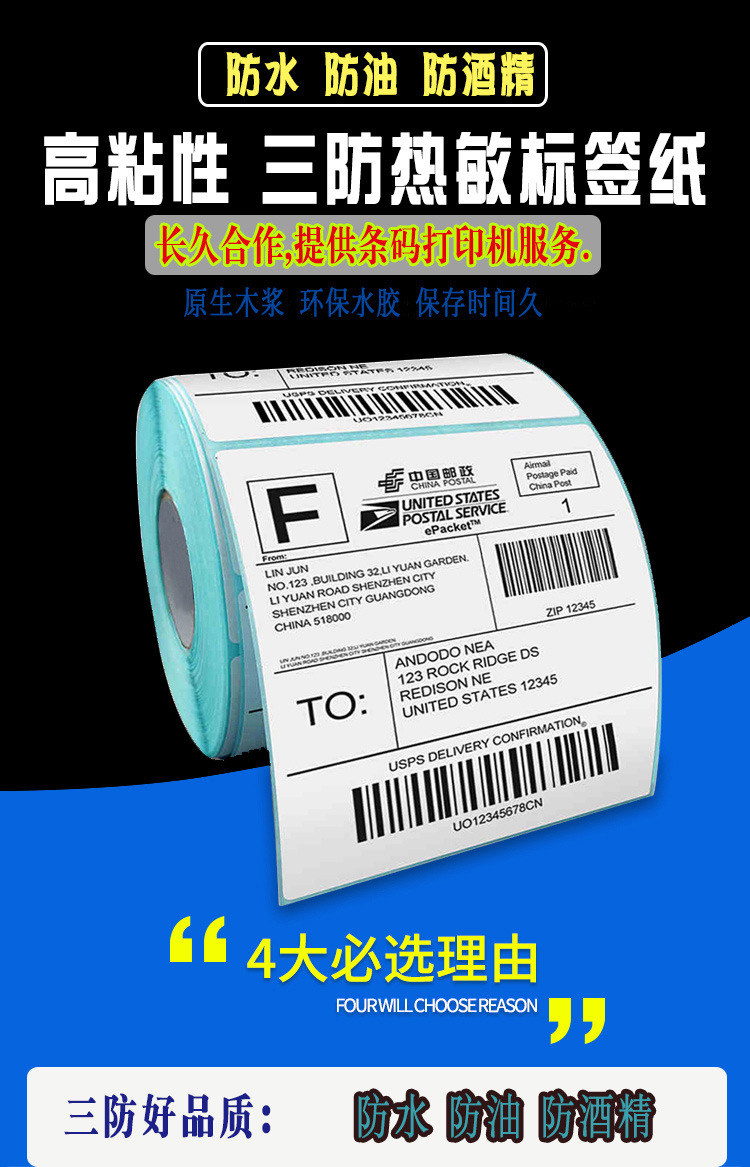 热敏标签纸 e邮宝热敏纸 亚马逊标签热敏纸100*100*500热敏纸定制