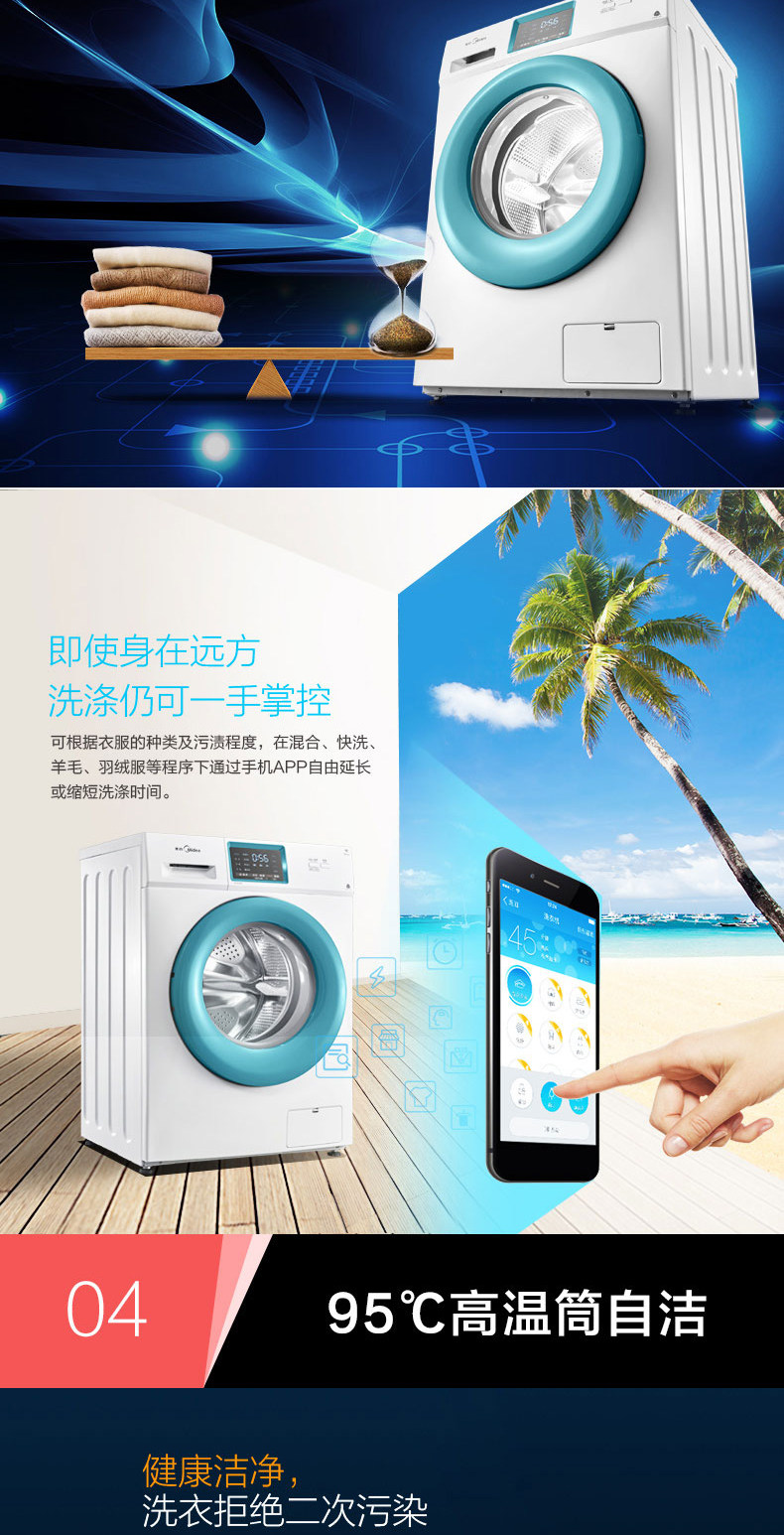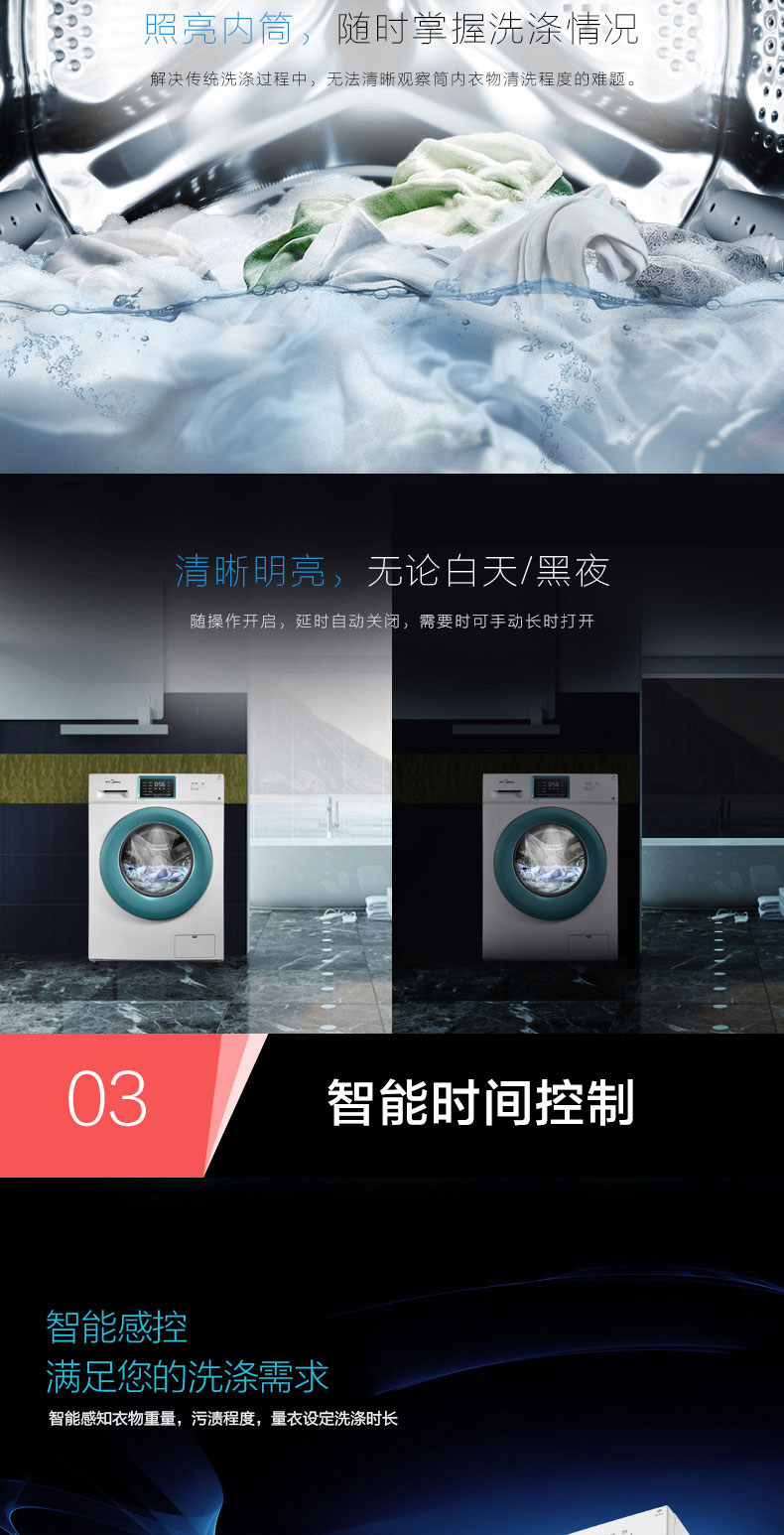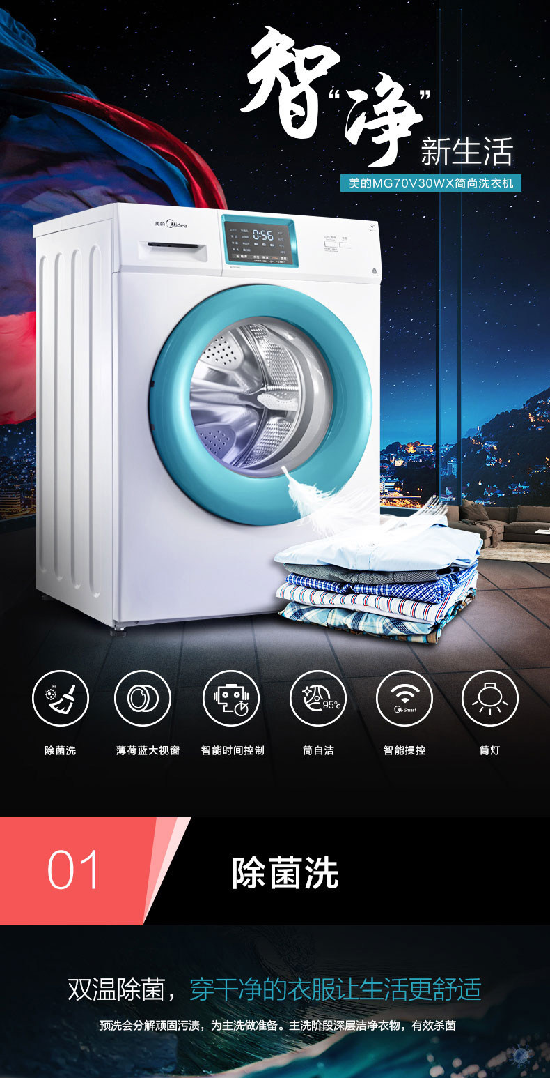 Midea/美的 MG70V30WX 7公斤智能物联网云滚筒全自动洗衣机 静音