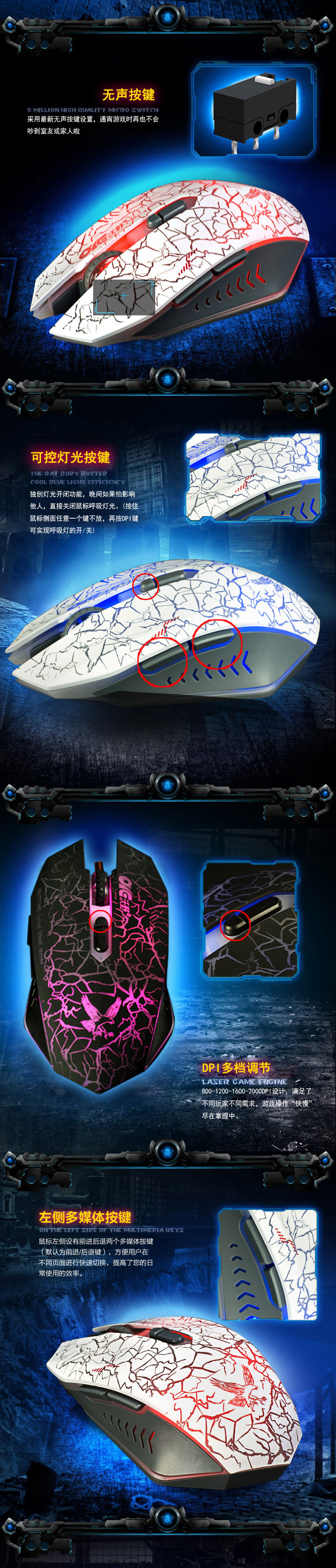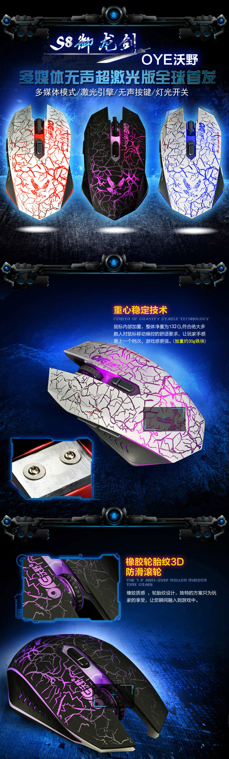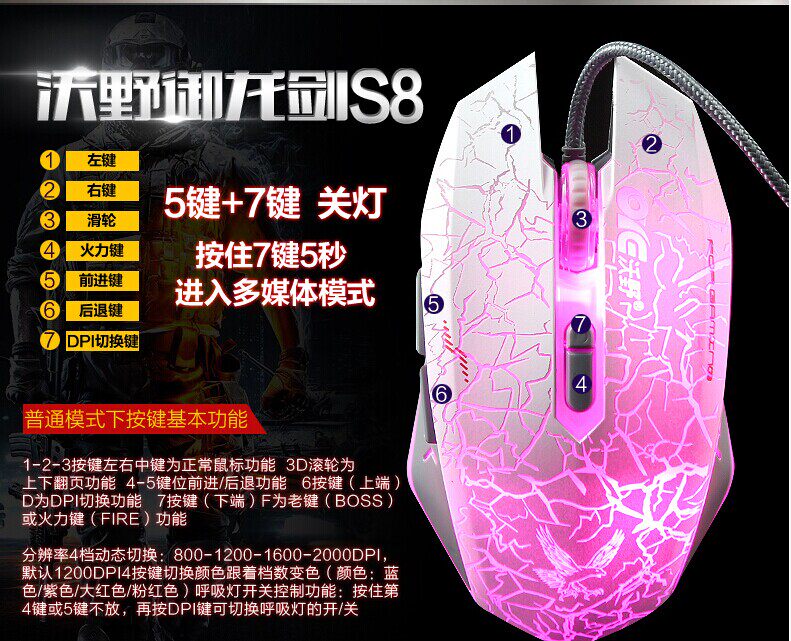 厂家直销 沃野V8降龙剑无声版鼠标 牧马人白色游戏鼠标 网吧鼠标