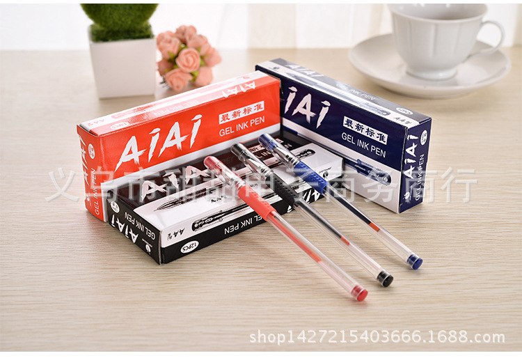 批发 文具办公用品中性笔0.5mm12支盒装三色水性笔耐水环保颜料