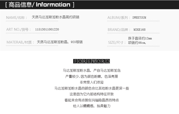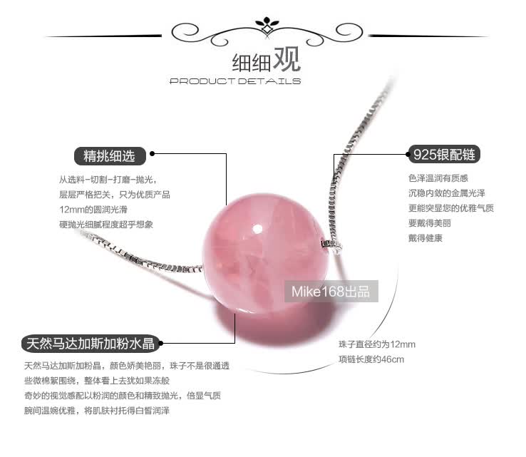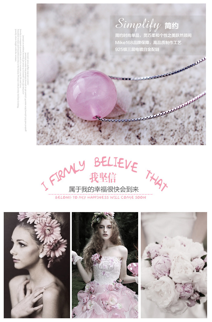 商品名称:Mike168 马粉水晶吊坠 女 s925银项链 时尚 饰品 礼物送女友 粉色