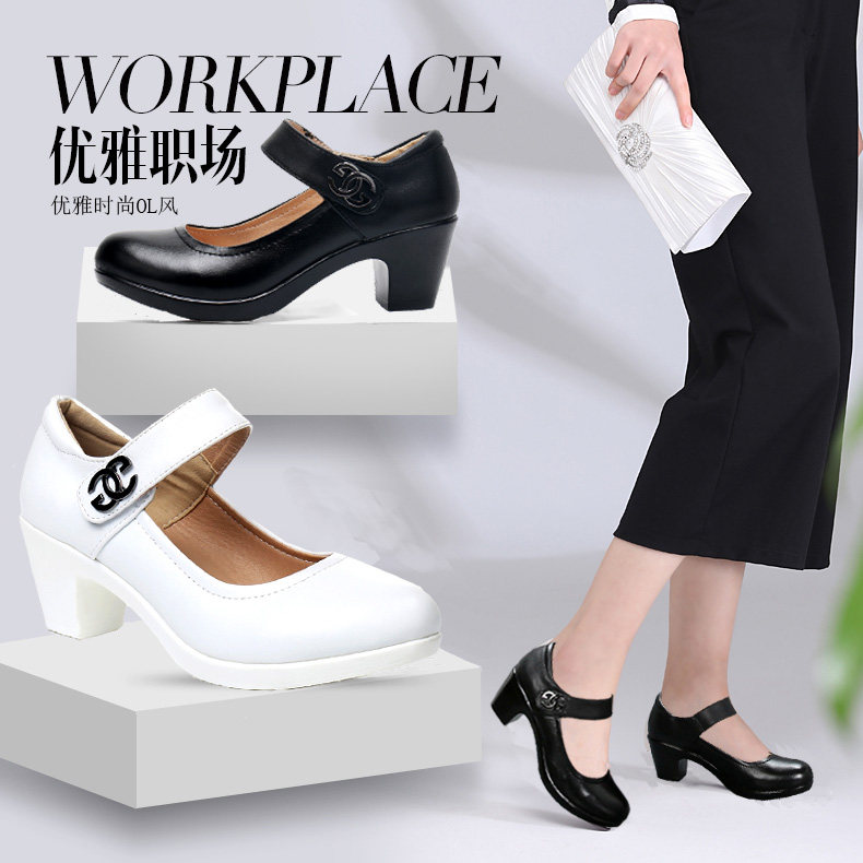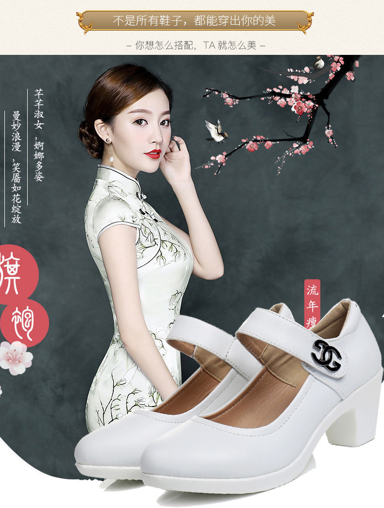 走秀旗袍鞋中跟演出鞋粗跟模特鞋真皮大码妈妈鞋43圆头41码42单鞋