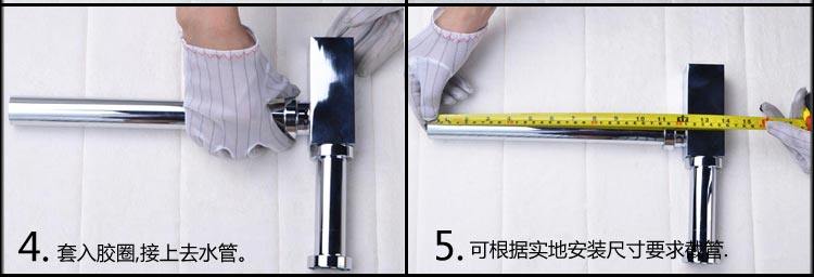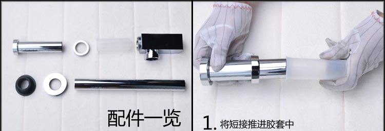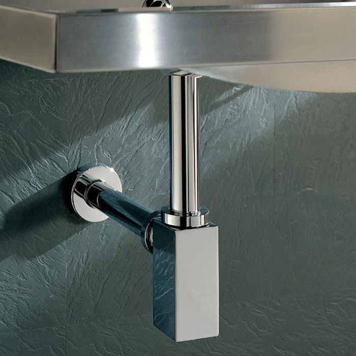 出口德国卫生间全铜方形墙排下水管 防臭面盆配件 玻璃盆下水套件