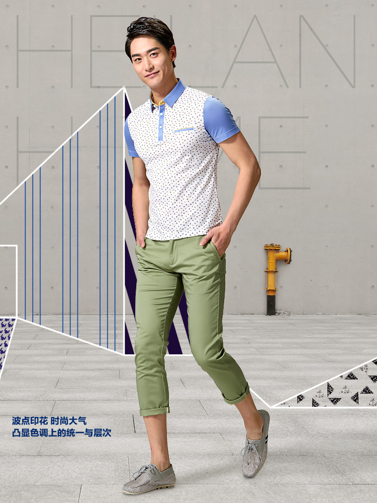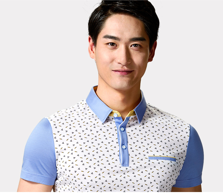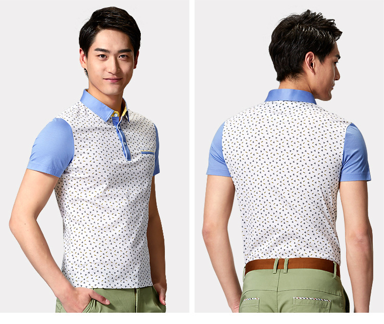 夏季新品男装印花拼接丝光棉短袖T恤男士修身纯棉舒适休闲POLO衫
