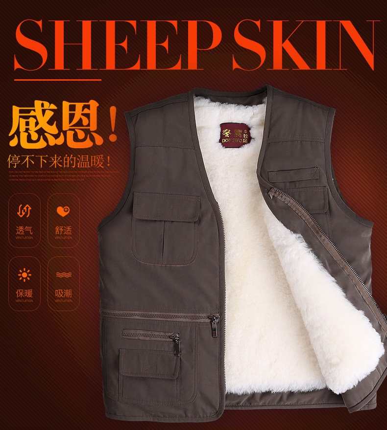 羊毛马甲男皮草中老年人秋冬棉背心保暖男坎肩羊皮马夹皮毛一体