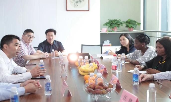 随后,考察团来到金义自贸区的“非洲之家”——金华市金促国际贸易有限公司。何安娜在金促公司见到了来自南非的红酒与博士茶,感到十分惊喜。座谈中,金正锋表示,金华是全国唯一拥有两个综合保税区的地级市,去年9月又正式获批中国(浙江)自贸区金义片区,发展潜力巨大,希望加强与南非等非洲国家的经贸合作。何安娜也十分支持金华与南非开展更加深入的合作,尤其要充分发挥自贸区金义片区的独特优势。