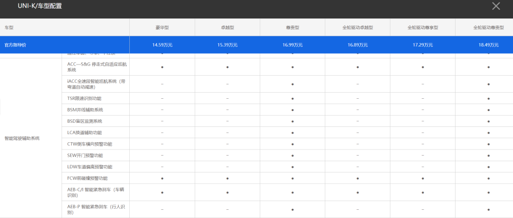 如果说L3自动驾驶无法实现,还有政策、法规方面的原因,对于很多消费者只是“美丽泡沫的破灭”。那么官方承诺的远程自动泊车、迎宾灯光秀等功能也全部被砍掉,对不少用户来说就堪称当头一棒了。以往,厂商往往会在宣传的隐秘角落加上小小的一句:部分车型采用该技术,非全系标配。但是这次,长安在官方宣传里并没有给出这样的免责说明,这应该不能归结为这家老牌车企的疏忽:因为UNI-K是实打实的全系车都没这些配置。